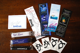 ...ends tonight! Enter HERE. If you want extra entries, tweet away and/or follow me @jenbigheart. Just leave the link in the comment box. Here is what I have up for grabs: Smart Chicks book mark, Wicked Lovely series book mark and SIGNED book plate from Melissa Marr, 2 Wicked Lovely bracelets, 1 Morganville bracelet, 4 tattoos from The Immortal Instruments from Cassandra Clare, and 2 SIGNED book marks from Alyson Noel.