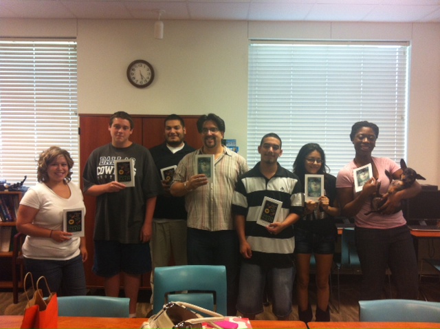 Our first stop was to LifeWorks to surprise a GED class with books! The teens were excited about their books and they were so funny! Most everyone picked Sherman Alexie's, Part-time Indian, one of my favorite books. Even the teachers dog loved his new book.